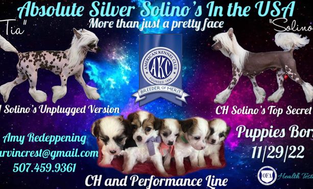 I'm Amy R., the breeder behind Absolute Silver located in Winona, MN. I offer top-quality Chinese Crested puppies for families who share the same love and passion that I do for these lovely companions. I want to make the transition from my loving home to yours as seamless as possible by giving personal attention to each little pup to ensure it is well-rounded and prepared to excel in its forever home. I spend many hours on the floor each day, handling and giving them the love the need.