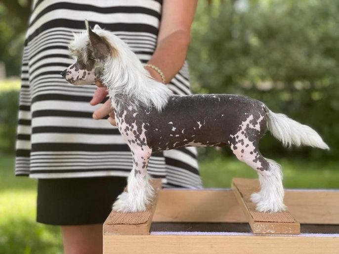 So is a male Chinese Crested. Carefully selected as a great representative of his breed, Amy decided to make him part of their program. Amy has passed Good Dog’s screening process, which involved a review of their breeding practices, environment, and the mental and physical health of their dogs.