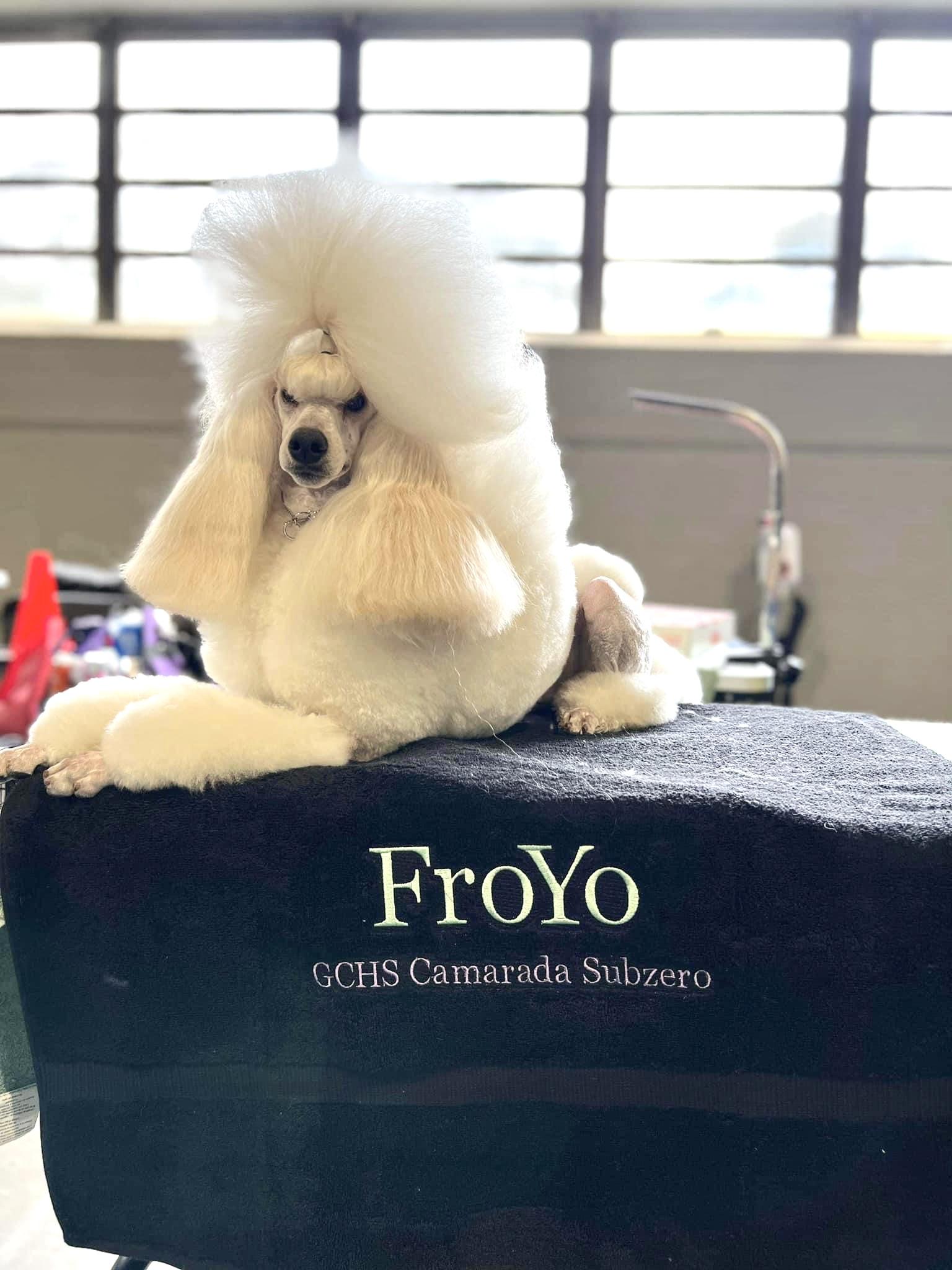 FroYo is a male Poodle. Carefully selected as a great representative of his breed, Ruthann decided to make him part of their program. Ruthann has passed Good Dog’s screening process, which involved a review of their breeding practices, environment, and the mental and physical health of their dogs.