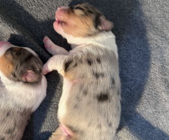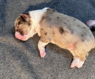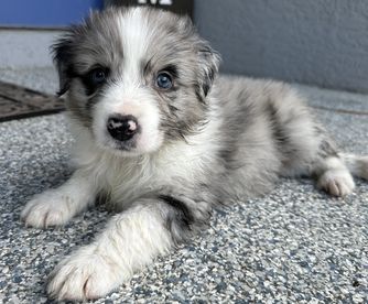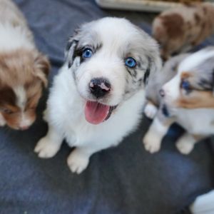 Our puppies include red & white, black & white, red merle, blue merle, black tri-color, and red tri-color. Colors will vary depending on the parent dogs.