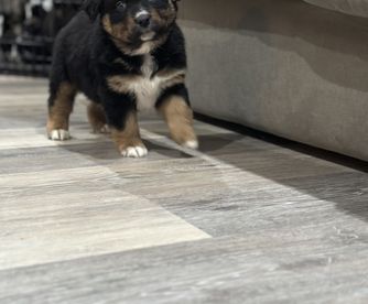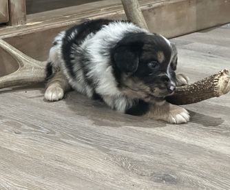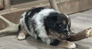 Our puppies include blue merle and black tri-color. Colors will vary depending on the parent dogs.