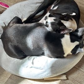 I'm Susan L., the breeder behind Achates Bostons located in Green Bay, WI. I am a small show breeder of carefully selected Boston’s. My goal is to preserve/better the breed. I only breed 1 or 2 litters a year. We live East of Green Bay on 1.6 acres. And I have an area of my back yard 200’ x 300’ fenced in for the kids. We have in-floor heat which the dogs absolutely love!