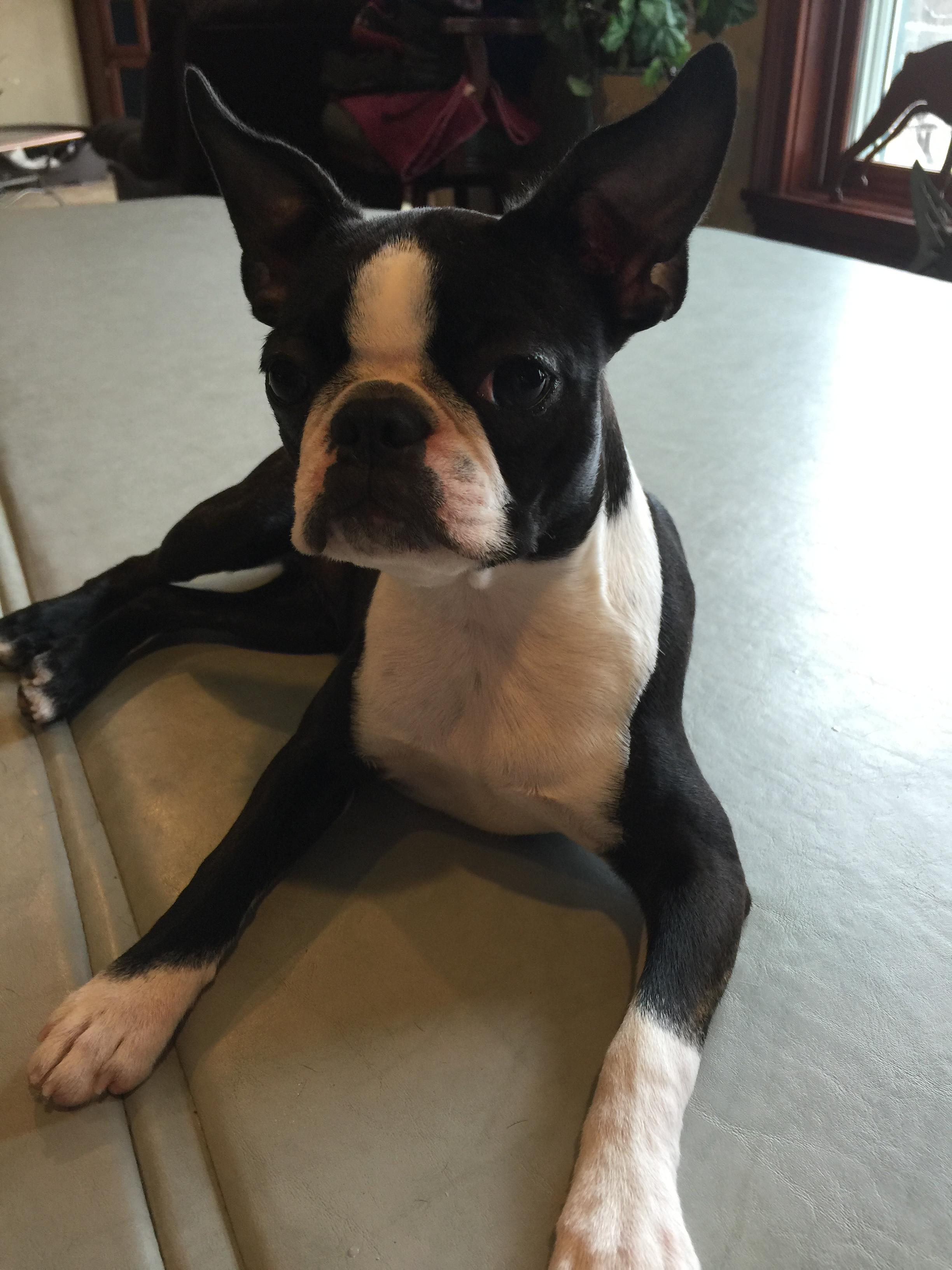 Sue, from ‘Achates Bostons’ breeds beautiful, healthy Boston Terriers. She is a very conscientious breeder who cares about the health and quality of her pups and takes great lengths to ensure they find well suited, safe homes. I met Sue in Green Bay to pick up our pup at 12 weeks. Our puppy was well prepared for travel as Sue acclimated him to the travel carrier. He arrived well socialized, healthy, and has been a great addition to our home. He also came with a care package which ensured that he had everything he needed to get off to a good start. Sue has also been great about answering any questions post adoption. We feel very lucky to have an Achates Boston and would highly recommend her as a breeder. We also recommend using the Good Dog application and contract process. It streamlines the process of purchasing and paying for a pup.