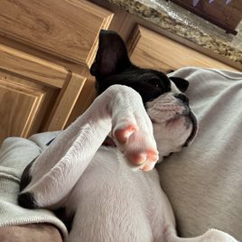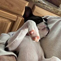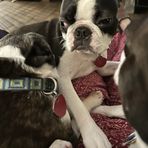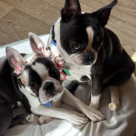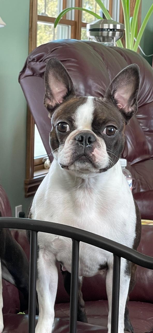 We've owned Bostons since 1987-2025 and were reputable breeders from 1988-2015, having produced 13 AKC Champions who finished rather quickly. In February, we lost our precious "Dino," but have the last Boston from our own breeding, "Lucia," who is now 9 yrs old. After serious thought, we decided to find another boy whom we could love and who could share life with our Lucia. The highest honor, we believe, one breeder can bestow on another Boston breeder is to trust that breeder and adopt a puppy from them. We searched the USA and Canada and decided that Sue and Lou were, indeed, worthy of such trust. Sue was thorough in vetting us and gave us her complete trust. Levels of trust having been established on both sides, we drove out to Green Bay eager to begin a journey of love for a puppy we had only seen in photos. On arrival, Sue and Lou greeted us with open arms, and we met our Santino, our new 5 month old boy. He was warm, affectionate, gentle, and we were content in feeling he could love us as much as we could grow to love him. We brought our 9 year old Lucia with us. Was she happy? Well, she snapped at him, gently letting him know she was hesitant at that moment. However, a long story made short, within one day, she adopted him as though she were his adoptive mother, and they cuddle, play, eat and sleep together. Santino is a structurally and emotionally sound and completely healthy Boston Terrier puppy who been taken care of by Sue and Lou. He had been given all the medical inoculations and examinations to certify that he was medically sound on the day he was adopted by us. Right now, we are enjoying this "goofy" little pup who is filling our hearts and the life of our Lucia. We suffered a terrible loss, but Santino is softening the hole in our hearts. If you decide to adopt a Boston pup, Sue and Lou will guarantee that you will have a healthy, sound and loving pup to cuddle and fill your lives.