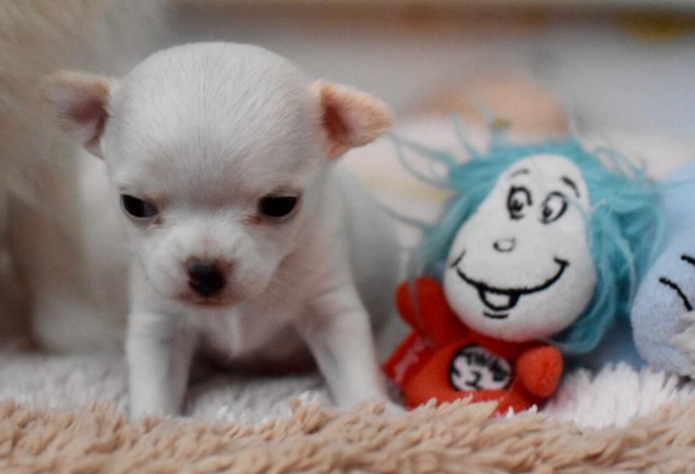 Jeanette has been communicative from day one always facilitating visits with my puppy via FaceTime until he was ready to bring home. She is a breeder who cares for all her puppies without being overbearing - she has enjoyed all the updates with my little Mikey and always responds . Mikey is better than I could have ever imagined , he is the sweetest cutest Chi , everything is easy with him , worth every penny. Mikey rules his new empire with a gracious crown. He’s so tiny and cute !