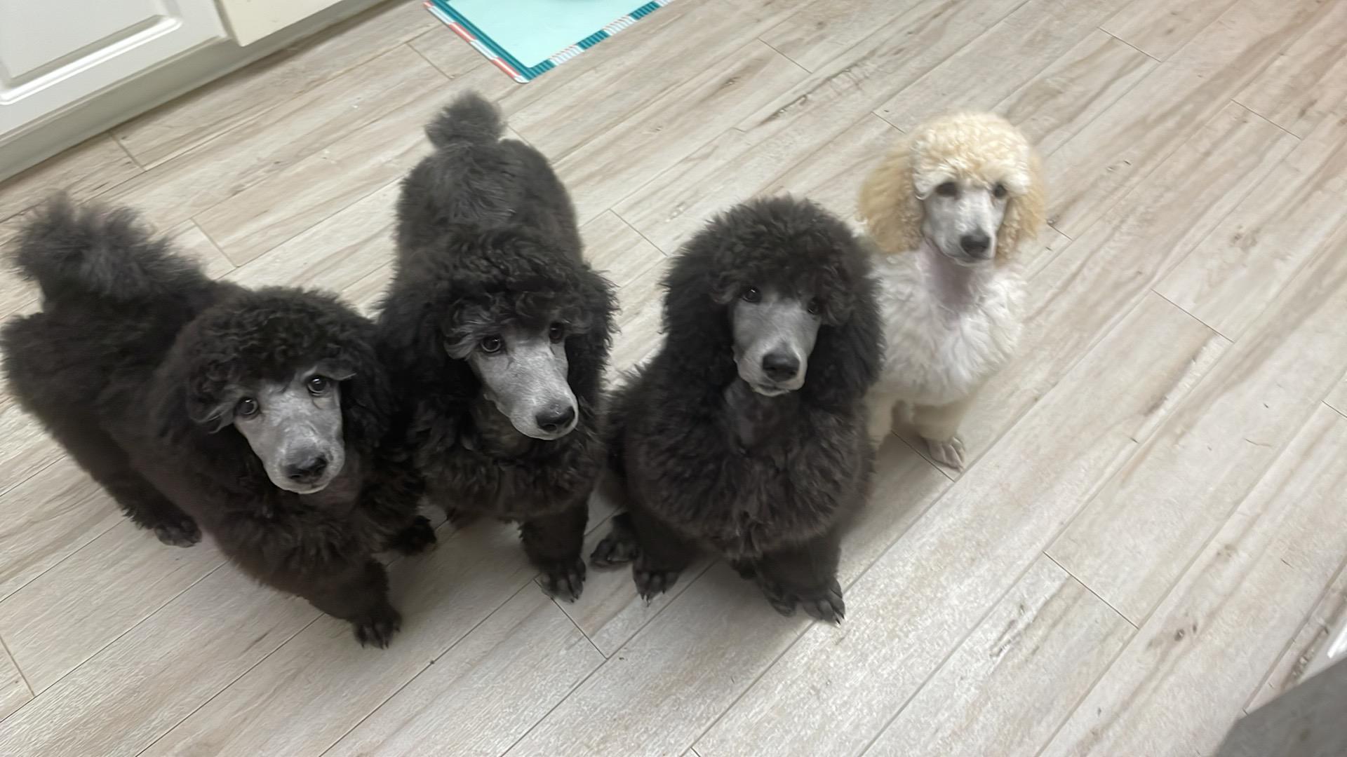Our puppies include silver, silver-beige, white, and parti. Colors will vary depending on the parent dogs.