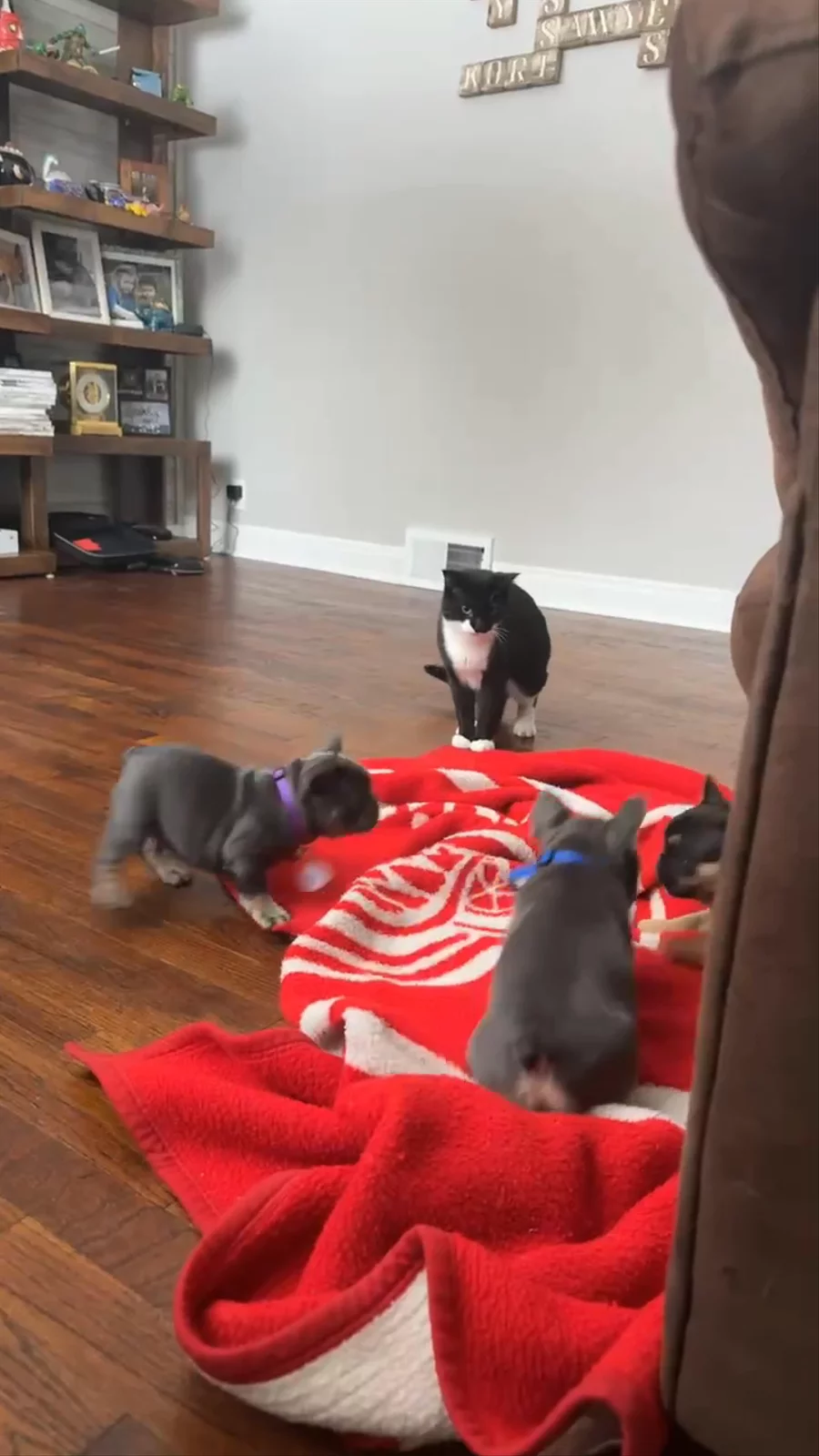 I don't know who is having more fun? The cat or the puppies?!