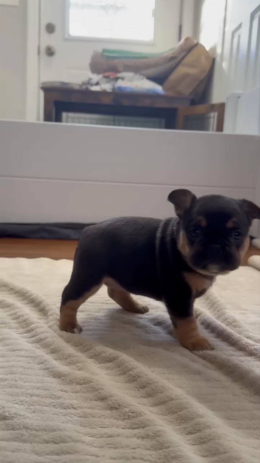 Freya is a Beautiful Black brindle baby from our Marshmallow x Lennox litter!!! She carries color and fluffy, so be prepared for rainbow litters!!!!