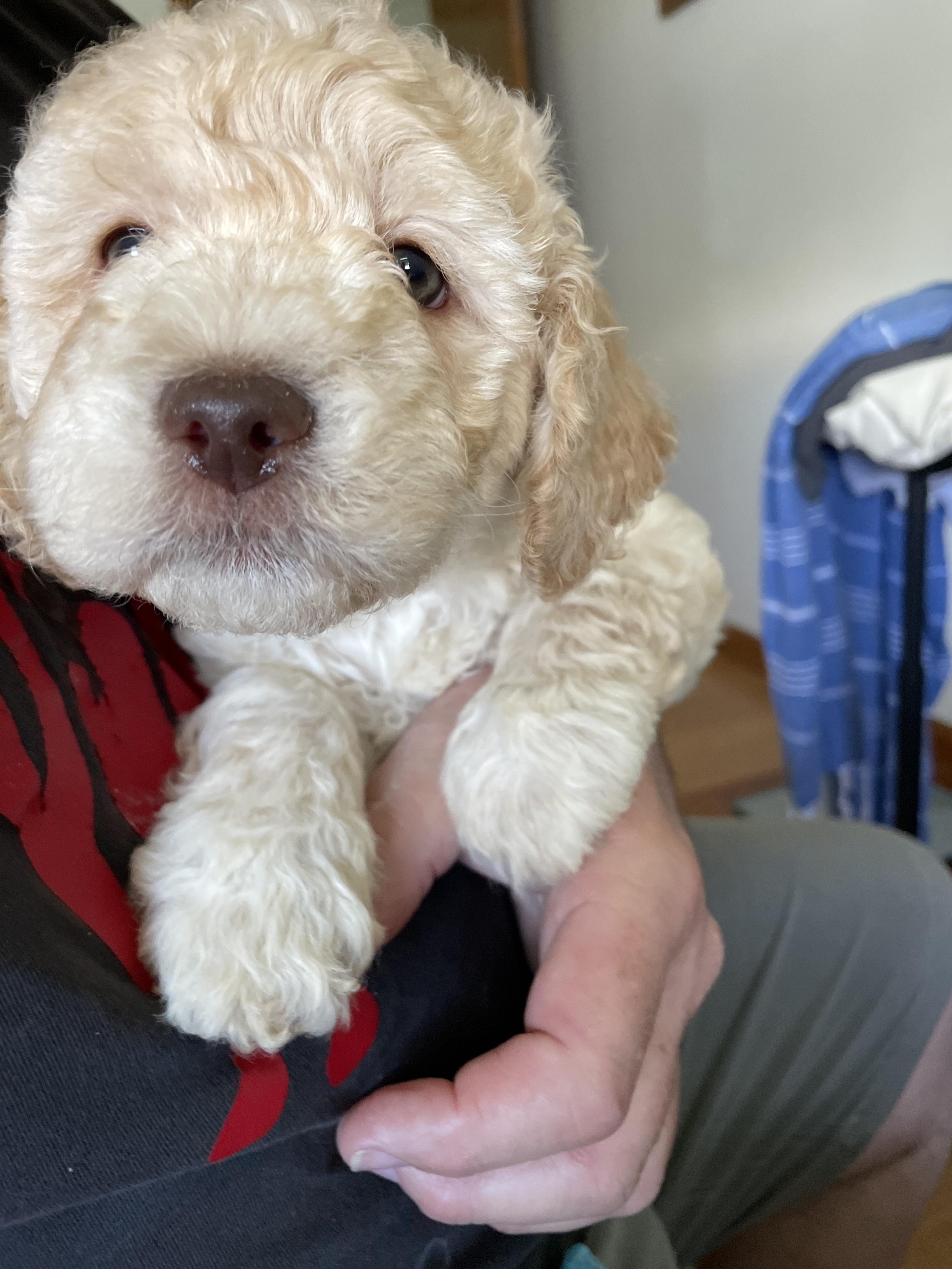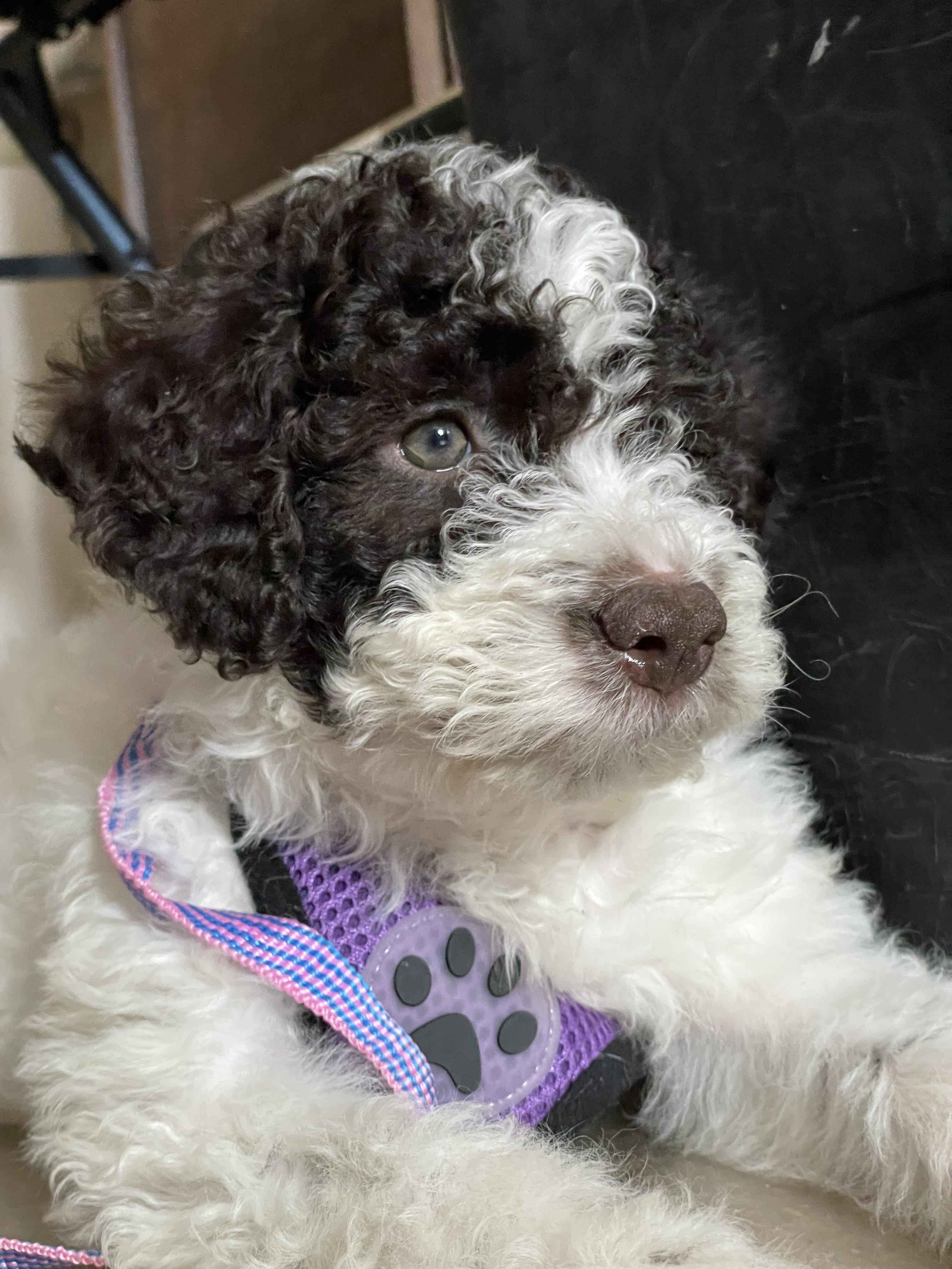 Izzy is a female Lagotto Romagnolo. Carefully selected as a great representative of her breed, Linda decided to make her part of their program. Linda has passed Good Dog’s screening process, which involved a review of their breeding practices, environment, and the mental and physical health of their dogs.