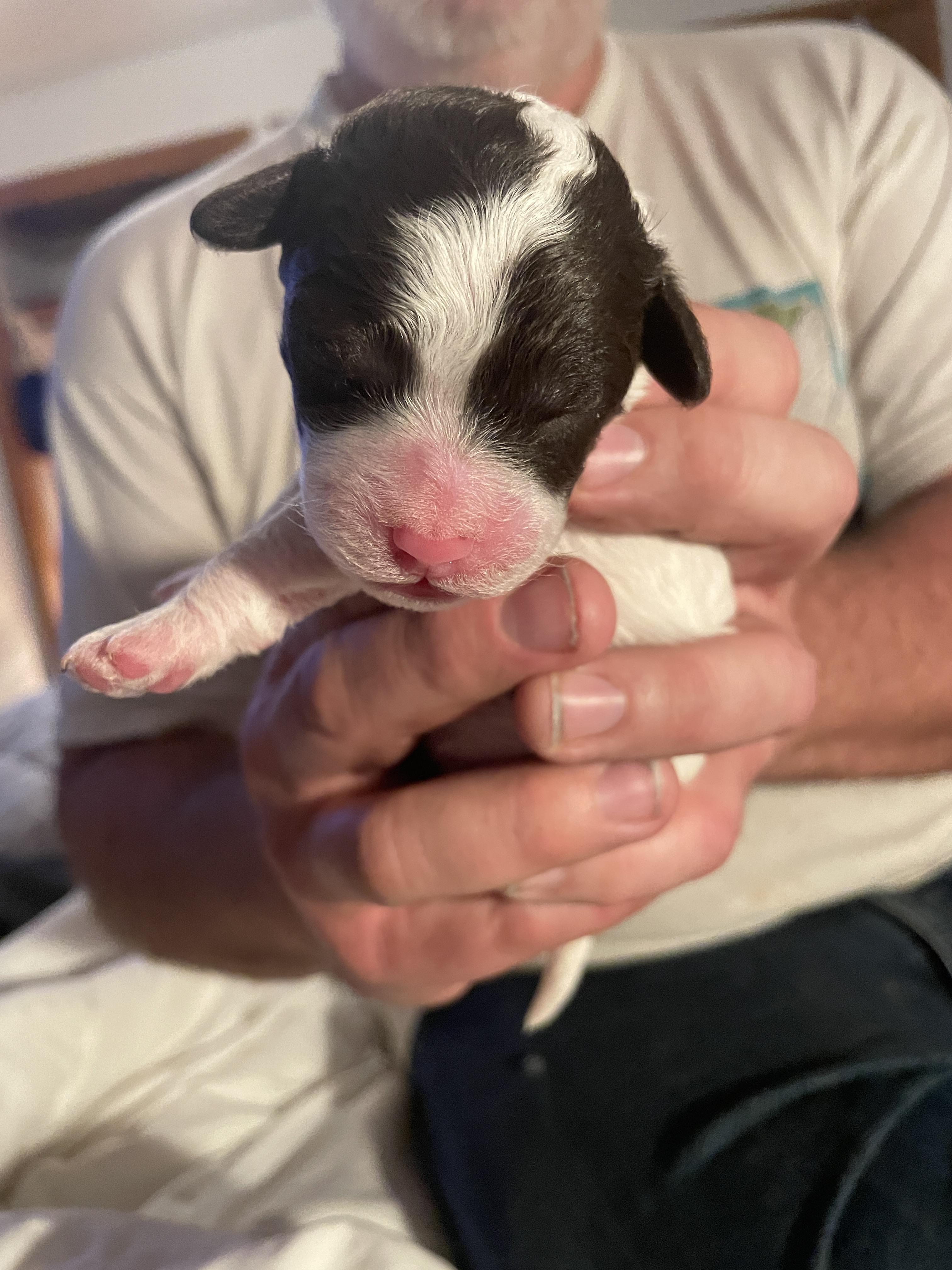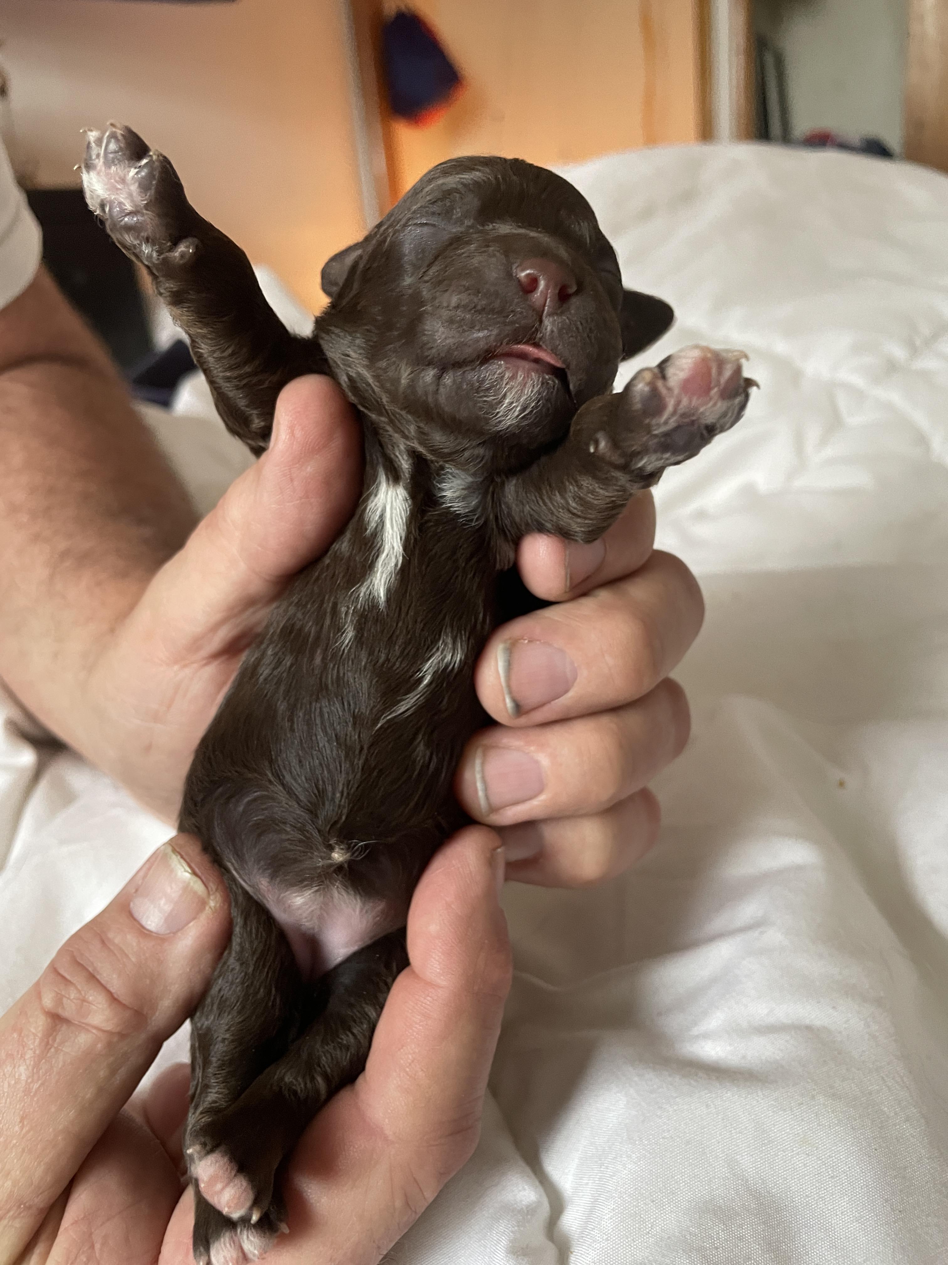 He was chosen because of his appearance but more importantly his personality. He is super chill and loving. He is a wonderful father and teaches the pups so much. He throws all colors so it is lucky he gives us the best to choose from.