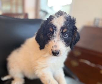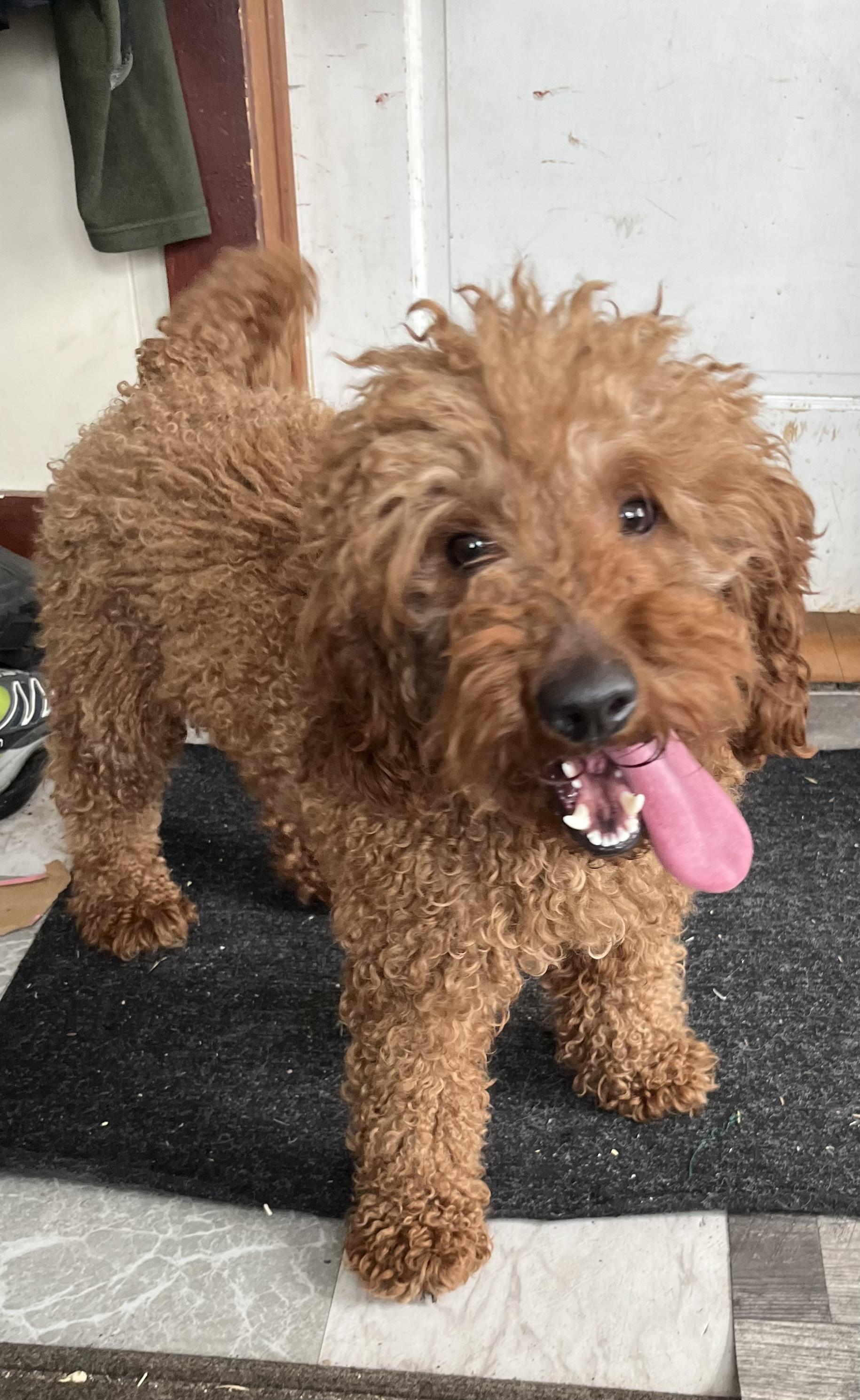 Alfie is a total buddy! He loves everyone and loves to walk around and greet people. He’s a great Medium doodle dad!