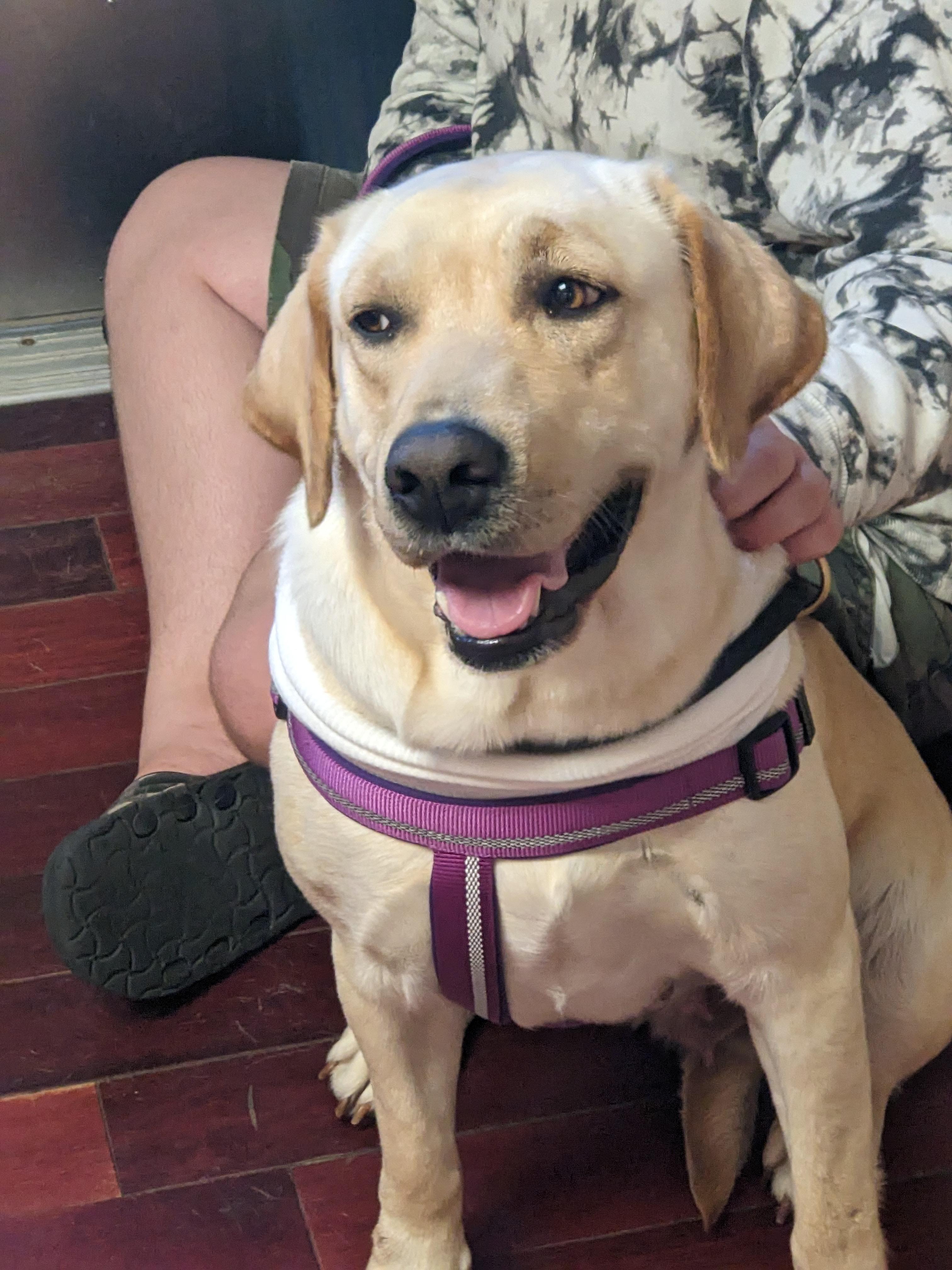 Kimber is a female Labrador Retriever about 5 years old. Carefully selected as a great representative of her breed, Bernadette decided to make her part of their program. Bernadette has passed Good Dog’s screening process, which involved a review of their breeding practices, environment, and the mental and physical health of their dogs.