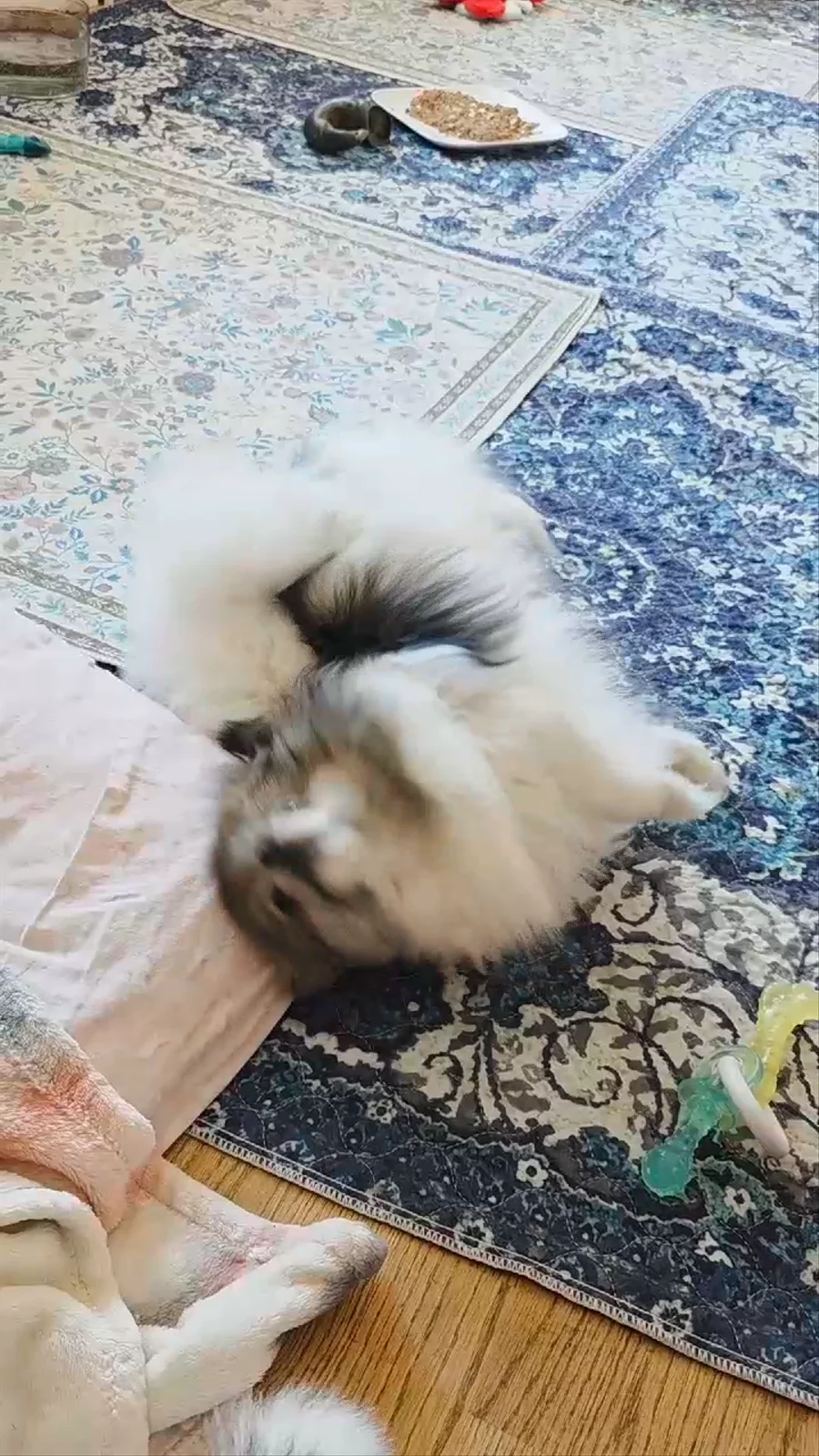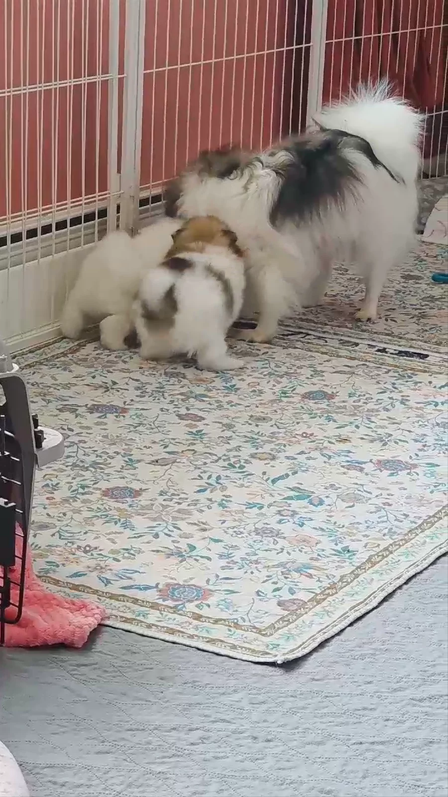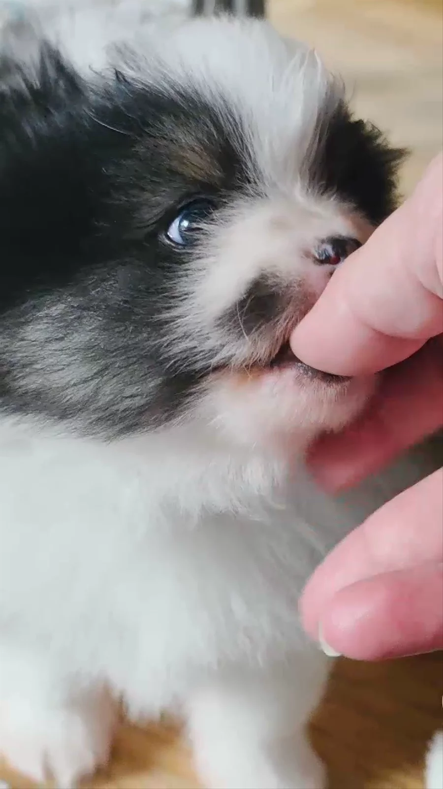 Lacy is actually a Fawn Sable parti. She is exuberant and lively - able to express her feelings using her entire body! Silly is her middle name - that happy-go-lucky Pom vibe that makes you forget you had a bad day. Lacy is up for whatever - a day up on the lake or snuggling on the couch (or by my feet). She can adapt her energy to suit the mood. She is usually pretty quiet unless she is in Mom mode - she takes being a mom very seriously and will protect her babies from strangers. Otherwise, she is happy to greet visitors and strangers alike. Lacy is Embark Health Tested and genetically clear of defects.