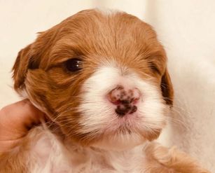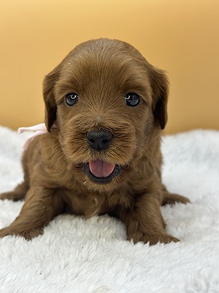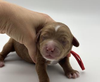 Our puppies are red. Colors will vary depending on the parent dogs.