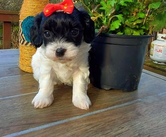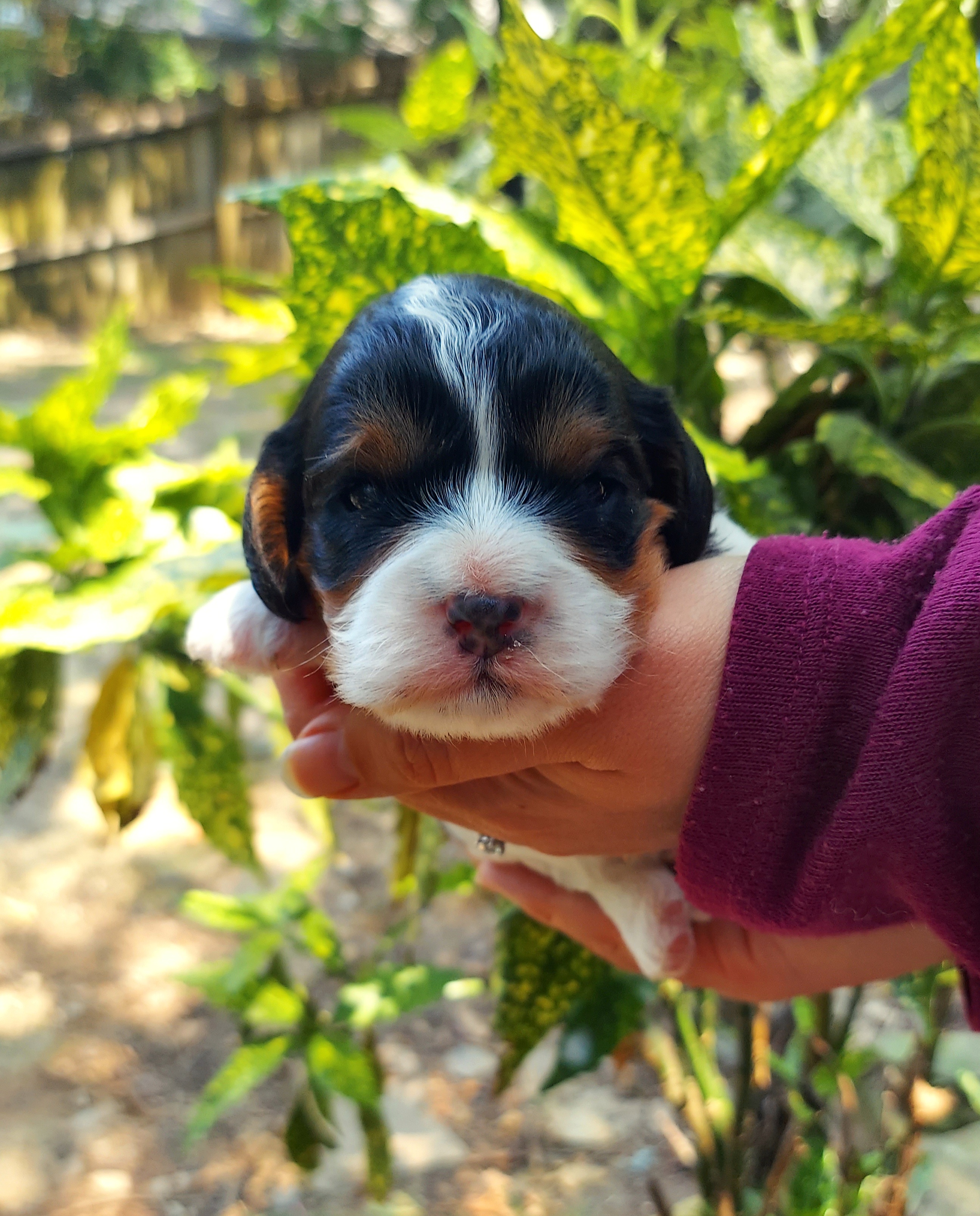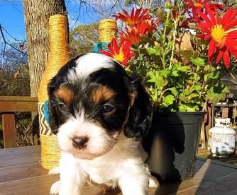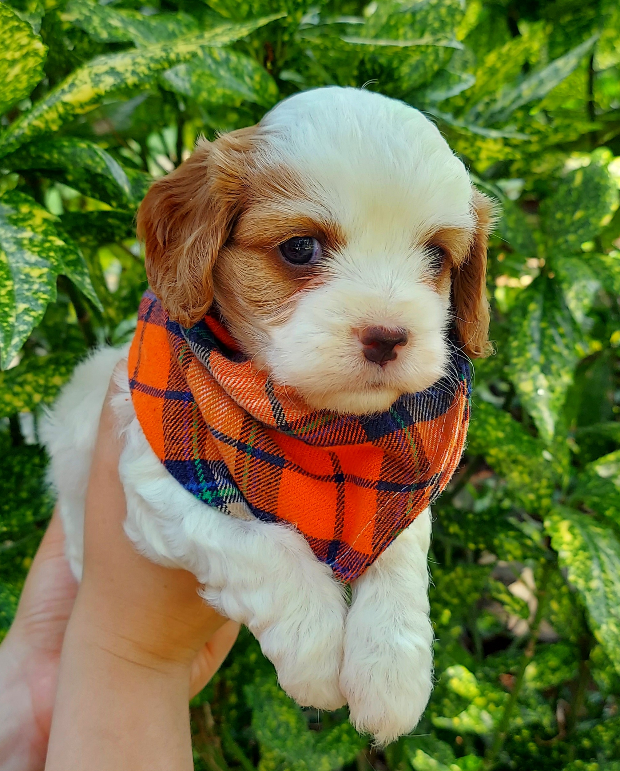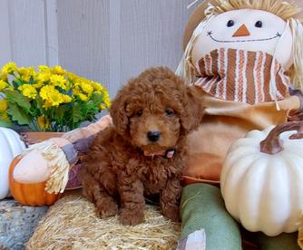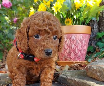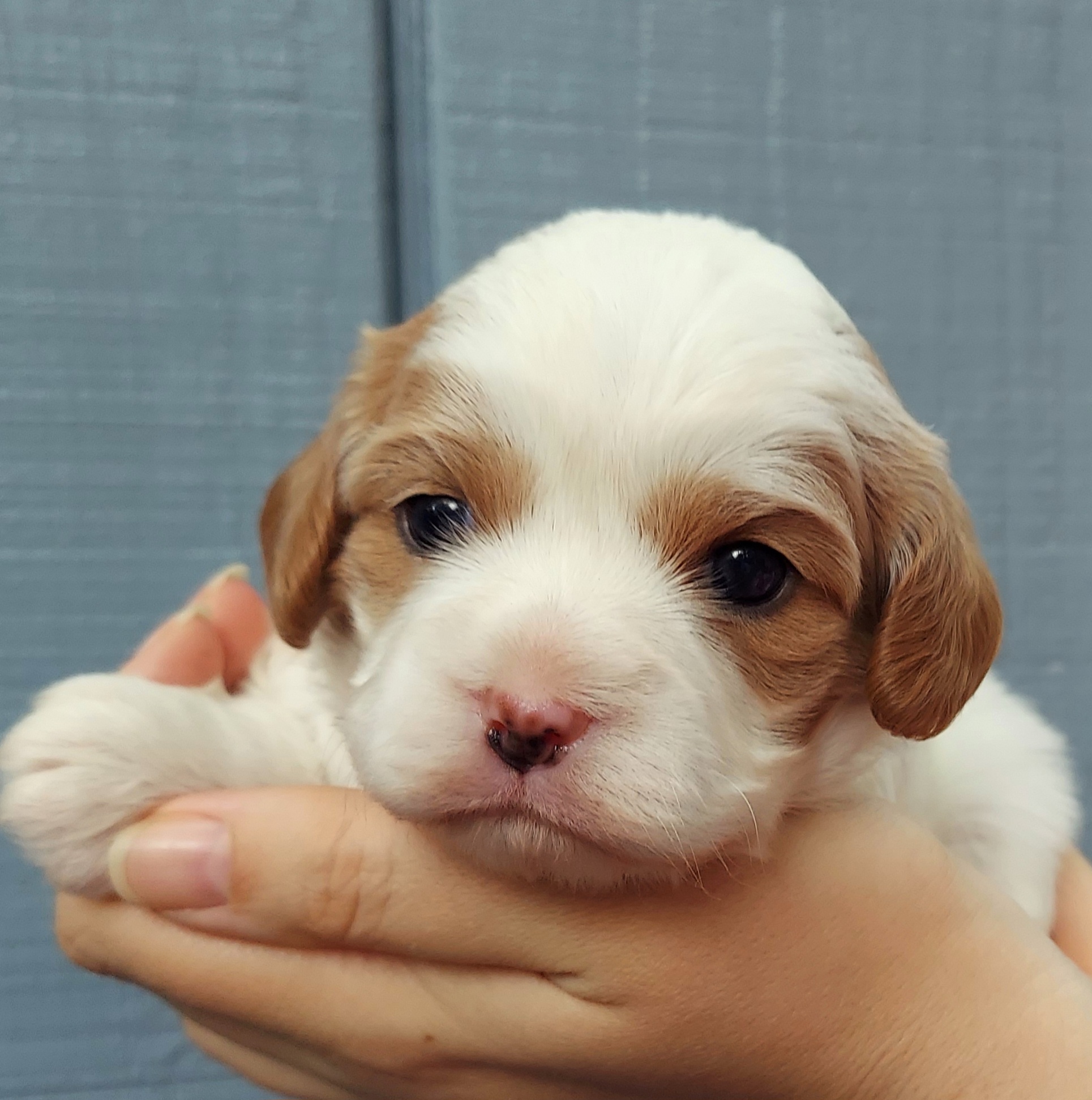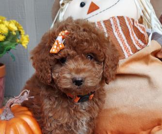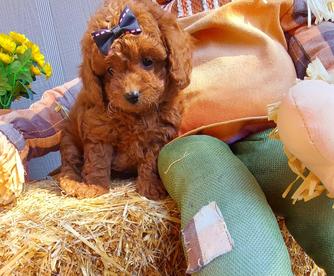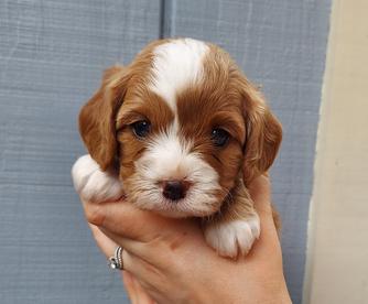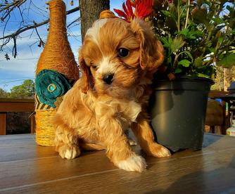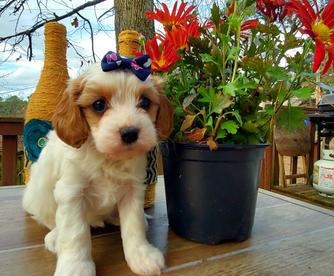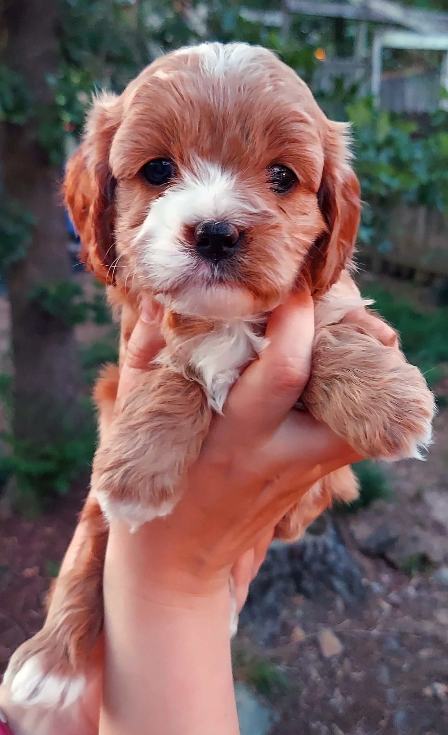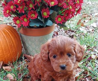 Our Goldendoodle puppies are apricot. Cavapoo puppies include apricot and red. Colors will vary depending on the parent dogs.