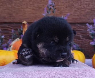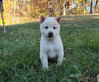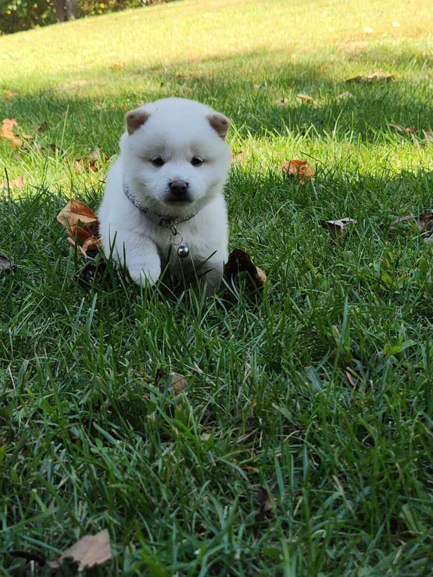 Everything with Fannie and purchase of our new Shiba pup went well. Fannie was quick to respond, met my husband with all the usual supplies and veterinary records, and give us a sweet new member of our family. Our new pup was happy from the get-go, confident, and nearly housebroken at 8 weeks old. Fannie also attached a small bell to her collar, which came in handy for keeping track of our Bella. We loved the bell idea! Thank you for our girl!