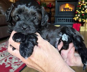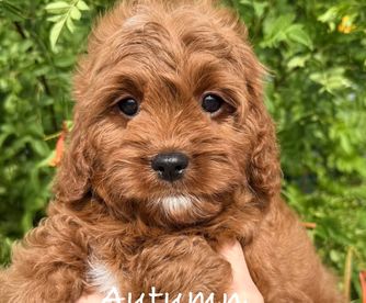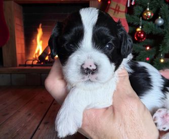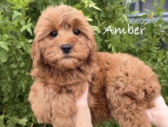 Charlotte is an adorable F1 Cavapoo. She is intelligent and affectionate. Charlotte loves to play with with her sisters and cuddle up on the couch for movie nights. Her curly fur is soft to the touch and she has the sweetest brown eyes that always seem to be filled with love and joy. Charlotte is a beloved member of the family and brings so much happiness to everyone around her. She truly is a special girl.