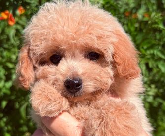Sophia is a brown Sable Party Toy Poodle weighing 6lbs. She has a beautiful fleece light coat and the sweetest disposition. She loves to cuddle and play with her toys, and is always eager to greet new people with a wagging tail and a gentle demeanor. Sophia is truly a joy to have around and brings so much happiness to our family.