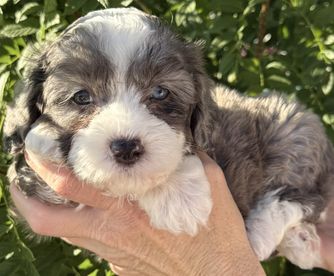 Harley is a beautiful Merle Mini Bernedoodle that will be about 25-30lbs. He was the first picked from his litter, but the family switched to a female. He is working on potty training and doing fantastic. I would love for you to come meet him in person.