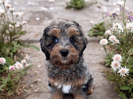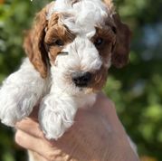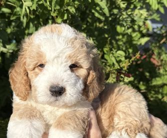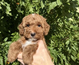 Our Poodle puppies include sable, brown, red, and parti. Bernedoodle puppies include brown, red, tri-color, and merle. Goldendoodle puppies include red, chocolate, and merle. Cavapoo puppies include merle, blenheim, and red. Colors will vary depending on the parent dogs.
