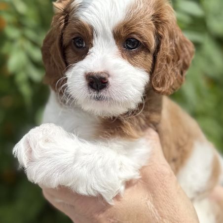 Isabella is a female Cavapoo. Carefully selected as a great representative of her breed, Richard decided to make her part of their program. Richard has passed Good Dog’s screening process, which involved a review of their breeding practices, environment, and the mental and physical health of their dogs.