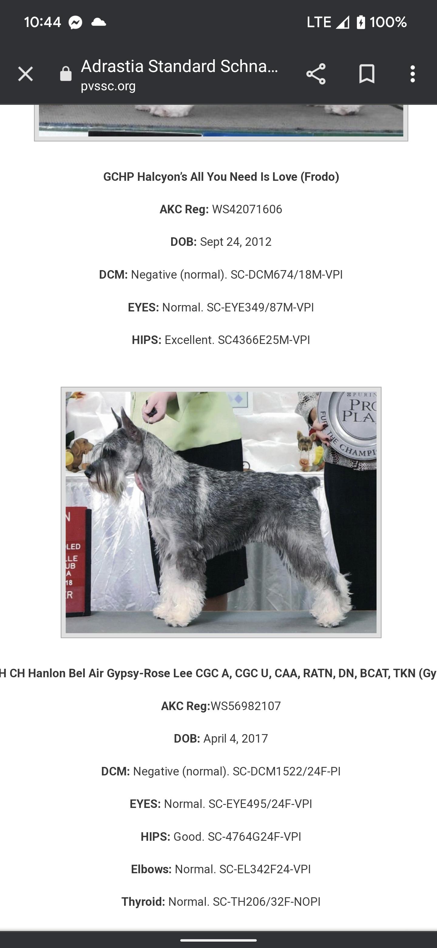 Adrastia Standard Schnauzers reports to performing the health tests below on their breeding dogs. Ask your breeder about the tests performed on the parents of your litter. Learn more about health testing for Standard Schnauzers.