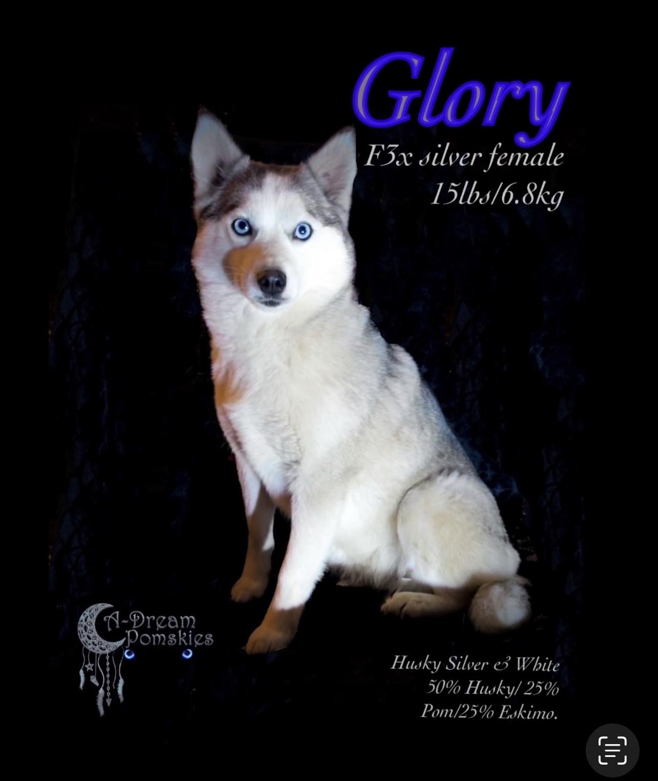 Glory is a female Pomsky. Carefully selected as a great representative of her breed, Tawnica decided to make her part of their program. Tawnica has passed Good Dog’s screening process, which involved a review of their breeding practices, environment, and the mental and physical health of their dogs.
