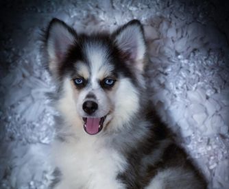Pomsky puppies include white, black and white, merle, and red and white. Colors will vary depending on the parent dogs.