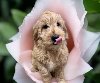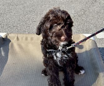 Libby is a female Goldendoodle. Carefully selected as a great representative of her breed, Marie decided to make her part of their program. Marie has passed Good Dog’s screening process, which involved a review of their breeding practices, environment, and the mental and physical health of their dogs.