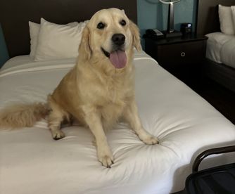 Kori is a female Golden Retriever. Carefully selected as a great representative of her breed, Marie decided to make her part of their program. Marie has passed Good Dog’s screening process, which involved a review of their breeding practices, environment, and the mental and physical health of their dogs.