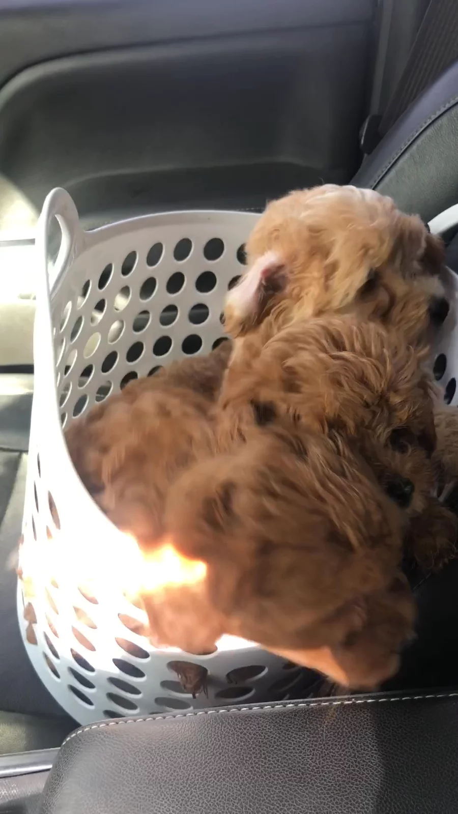Puppies on the way to the vet for their second set of shots. All are healthy and doing well.