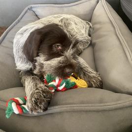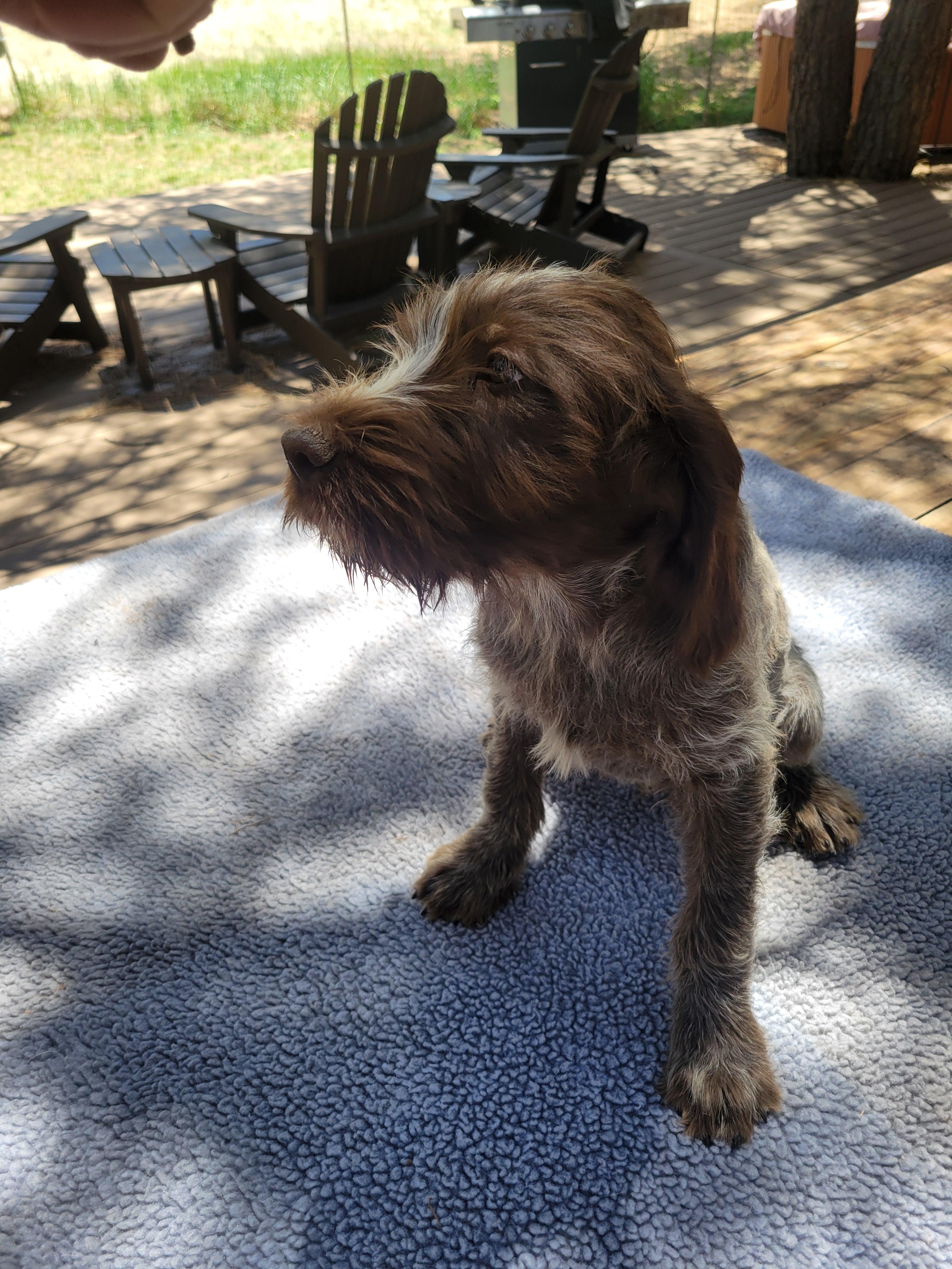 We are so happy we got our WPG from Jim! He clearly loves his dogs and the breed. His kennel is well kept, and his dogs are clearly well taken care of. Jim was easy to work with, and answered our questions promptly. We brought home Gandalf, and he is a confident loving puppy! He already knew how to use a doggy door when we brought him home, and is adjusting smoothly to his new home. We are so pleased with Agassiz Wirehaired Pointing Griffons in AZ! We would get another puppy from Jim anytime!