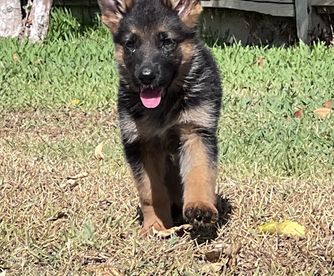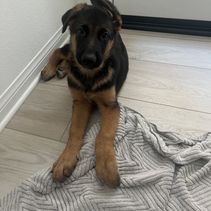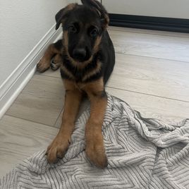 We recently lost our 8 year old German shepherd to cancer. My son was heart broken. So we thought a new puppy would help him through his grief. That’s when I found Jacqueline! Being that we lost our last boy to cancer, making sure we got a healthy puppy was a number one priority! Jacqueline’s dogs are thoroughly tested to ensure the pups aren’t passed any genetic diseases. Jacqueline was very kind and patient answering the millions of questions I had. She was a joy to work with. She let me go visits the pups before putting any deposit down. I wanted to see the pups temperament before deciding on one. She was very honest and genuine! After a short time with the pups we took home our pup “Asher”. He is adjusting extremely well in our home.Very well behaved pup. Super smart and loving. Jacqueline had already started crate training him, so he transitioned to his crate at home easily. He already knows how to sit and lay down on command after only 2 short days of training! We are so happy to have found Jacqueline and our new puppy! Thanks again for the new addition to our family!