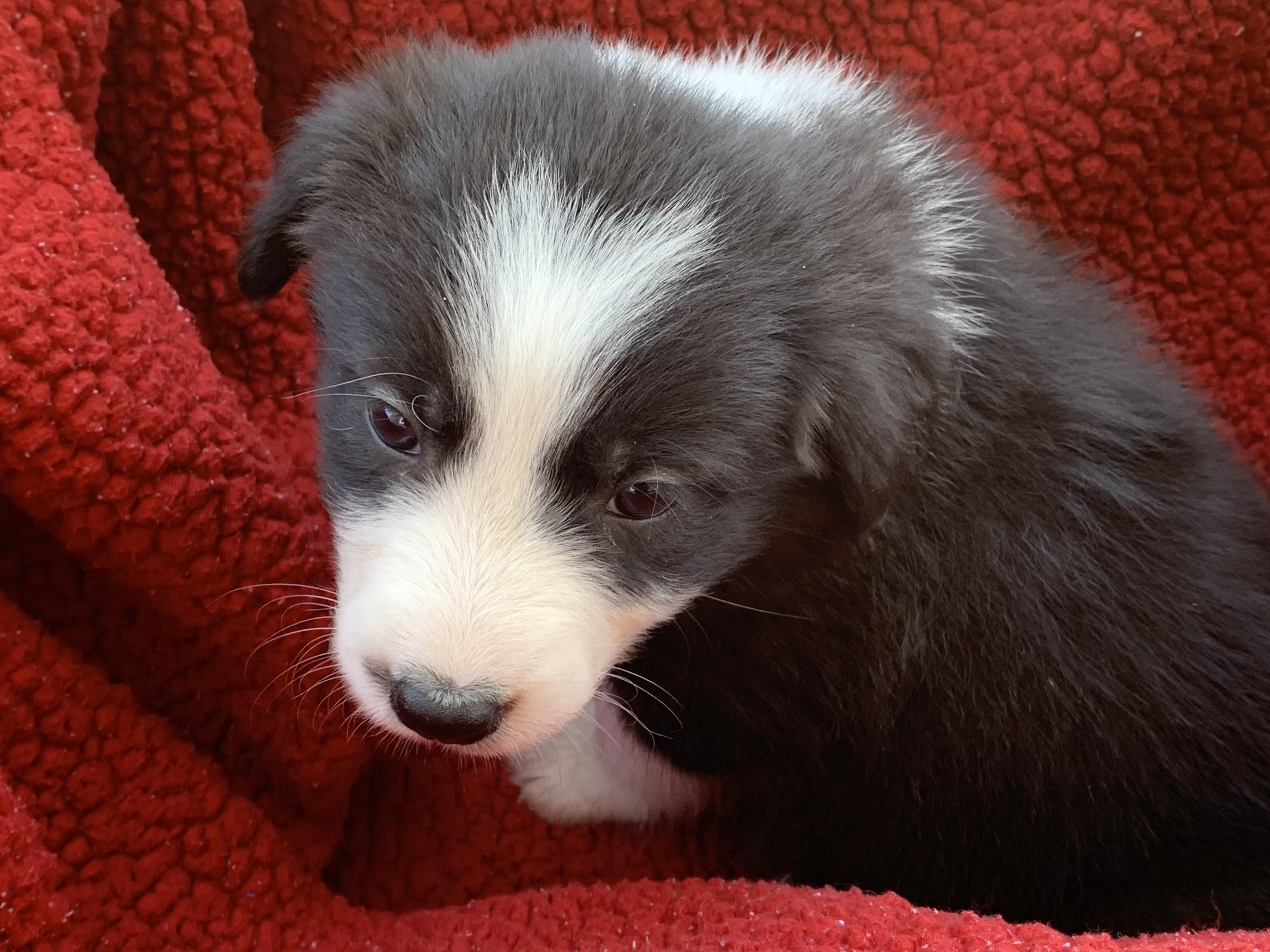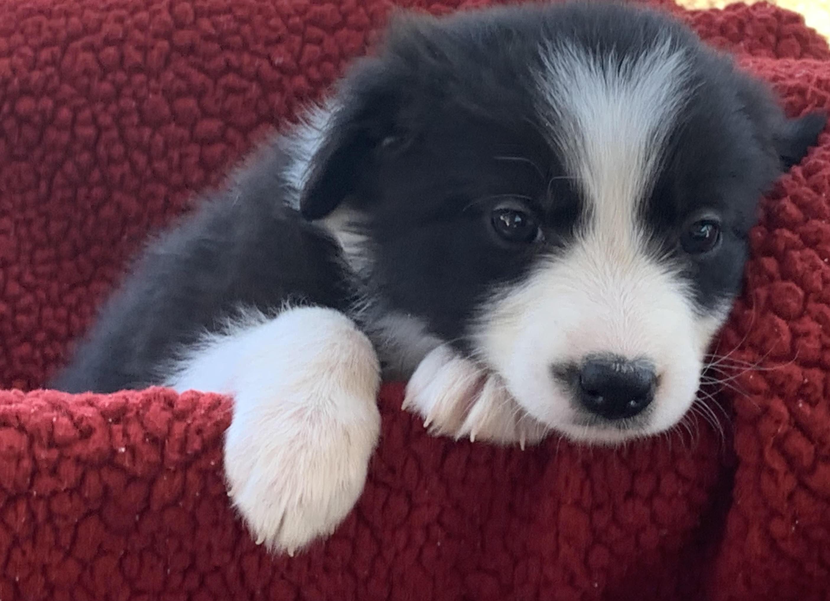 Our Border Collie puppies have rough coats. German Shepherd puppies have stock coats. Coat types may vary depending on the parent dogs.
