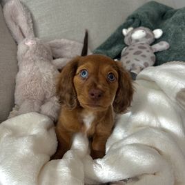 We could not be happier with our experience with AH Doxies! She was very quick to respond and sent pictures/videos very often! She made this process so seamless and we can tell our pup was raised in a very loving home!! I would definitely recommend AH Doxies!!