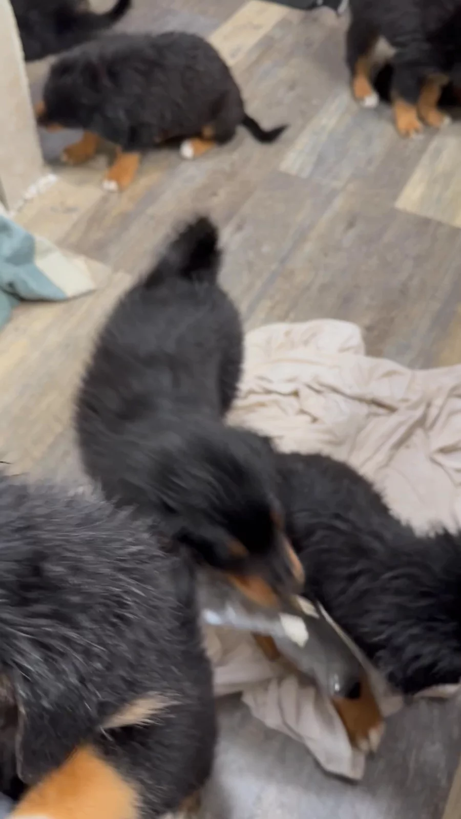 Goodness what a long afternoon. A couple of puppies did get car sick on the ride back, but that’s to be expected. Everyone is in good health. All males’ testicles are descended (always a concern - it’s good to get confirmation). Everyone is vaxxed, dewormed, and microchipped. Puppies got bored waiting and crashed at the vet’s office.