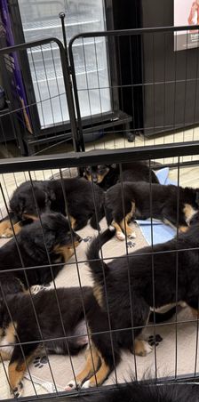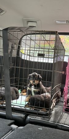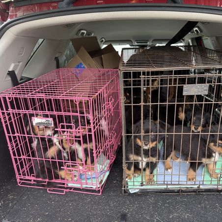 Puppies loaded up before leaving for vet to get shots, deworming, and microchips.