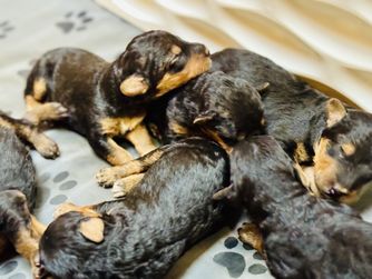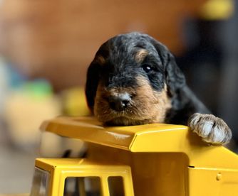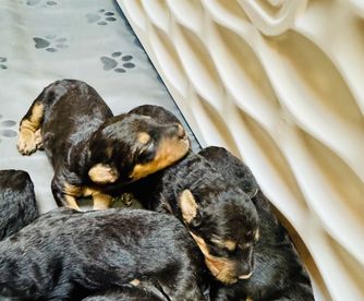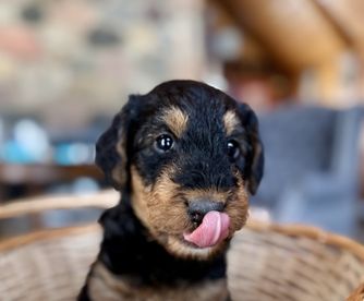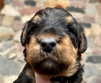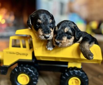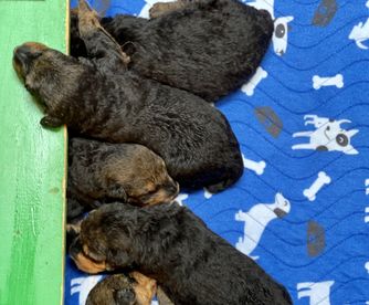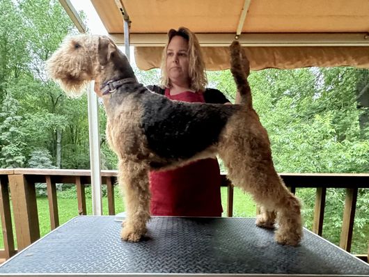 All of our adults are health tested through the OFA (orthopedic foundation for animals) prior to breeding. Puppies are temperament tested prior to placement using the Volhard Puppy Aptitude Test. All of our airedales are raised in our home with our family. They are raised utilizing Jane Killon's Puppy Culture to create a well balanced, confident dog through all stages of development.
