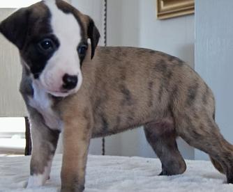 I'm Joy L., the breeder behind Aiukli Whippets located in North New Portland, ME. We’re excited to share our very first litter with you. These special puppies come from a loving home where their parents, both AKC U.S. Champions, have been health tested to ensure strong, happy pups.