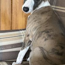 Maggie Mae is a beautiful example of everything a whippet should be. She has a well balanced athletic form. She is confident in the confirmation ring, and serious on the coursing field. She travels well, is clean, and friendly. She enjoys the company of children and is a favorite at local stores. Maggie is an AKC Champion and is health tested.