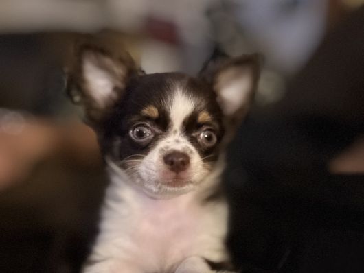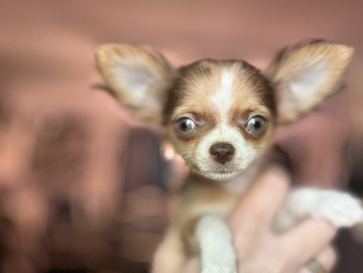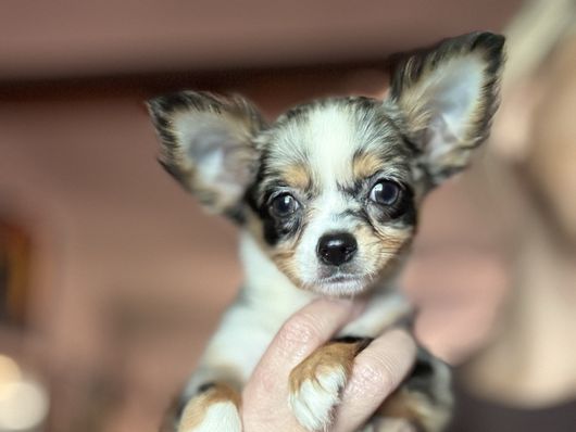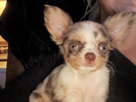 Chihuahua puppies have long coats. Coat types may vary depending on the parent dogs.