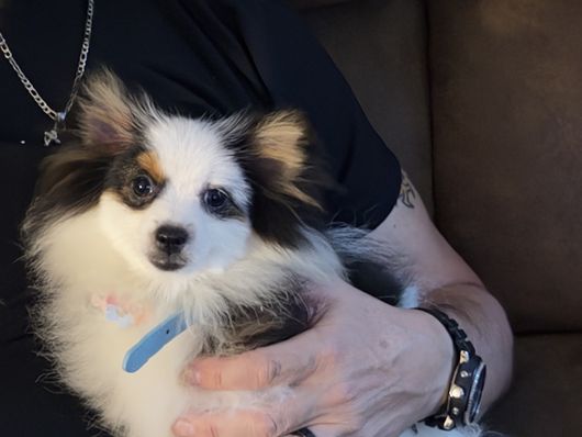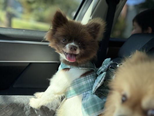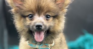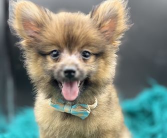 Our Pomeranian puppies include chocolate parti, black parti, red, cream, black, chocolate, chocolate merle, chocolate and tan, red sable, black and brindle, and black and tan. Chihuahua puppies include black, chocolate, chocolate sabled fawn, red and white, blue merle, blue and tan, black and tan, and black and red. Colors will vary depending on the parent dogs.