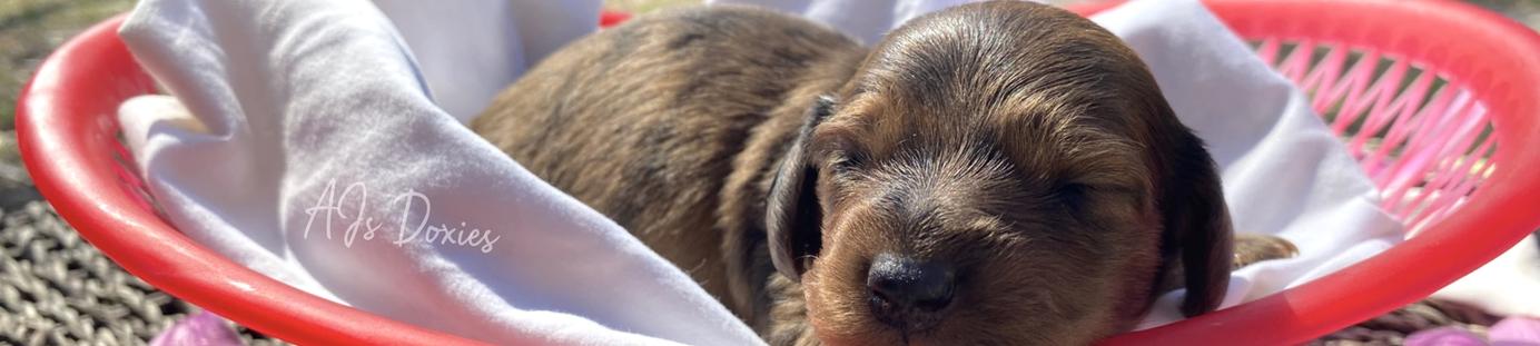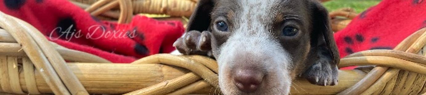 I'm Ashley J., the breeder behind AJs Doxies located in Barnwell, SC. All of my babies are raised in home with my two children. I make sure that your puppy gets a well-rounded foundation. I start crate and potty training. Socialization & householding, firework desensitization.