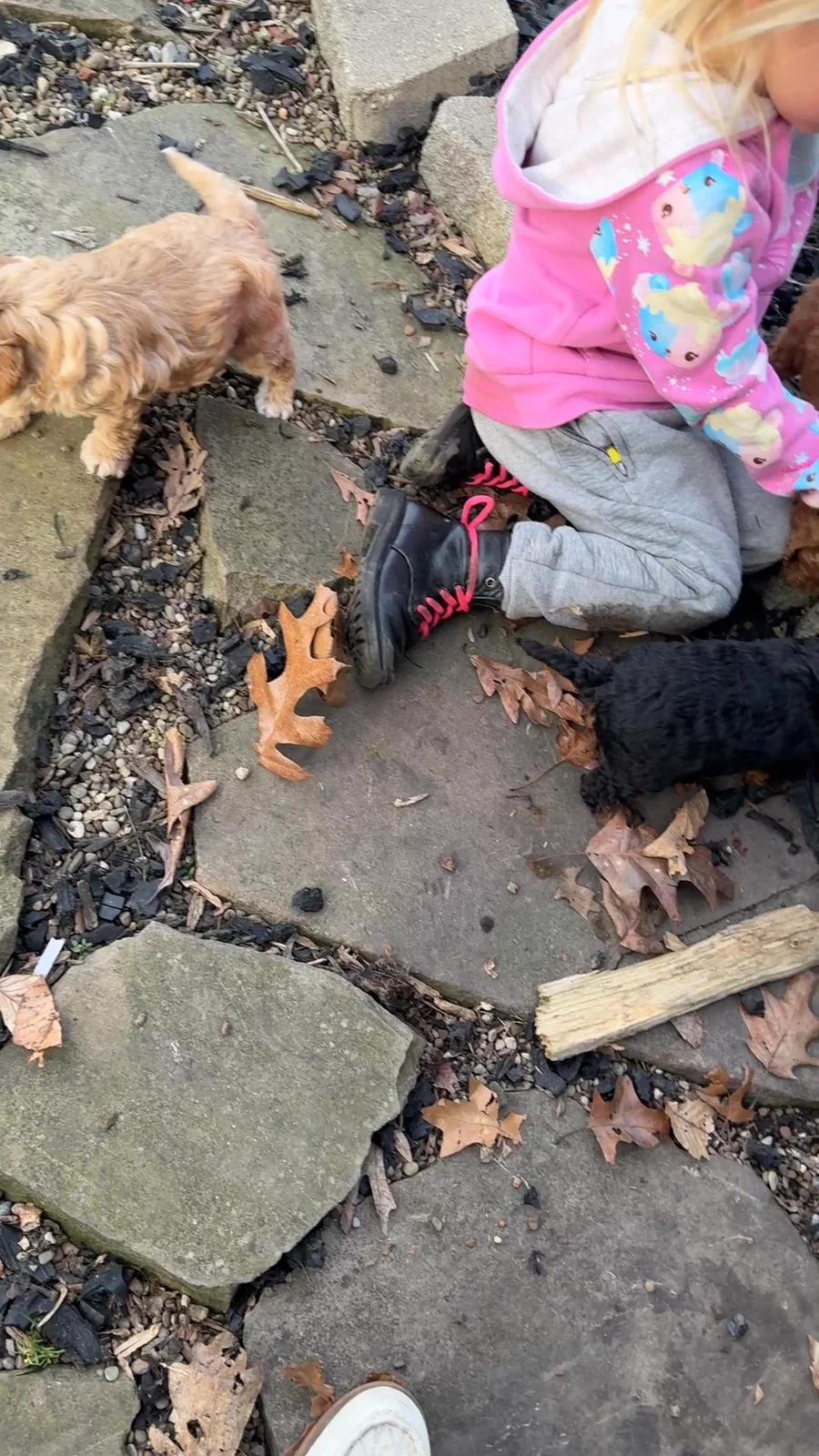 When we moved to our 25 acre wooded tree farm and decided to foster children, puppies ❤ just made sense. The kids adore the puppies and assist with their care. The puppies love playing and snuggling with the kids.