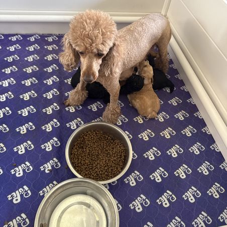Our puppies include cream, apricot, red, chocolate, black, phantom, and parti. Colors will vary depending on the parent dogs.