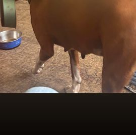 Zoie is a female Boxer. Carefully selected as a great representative of her breed, Sherron decided to make her part of their program. Sherron has passed Good Dog’s screening process, which involved a review of their breeding practices, environment, and the mental and physical health of their dogs.