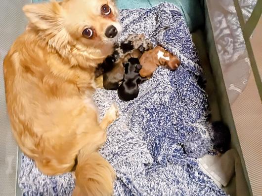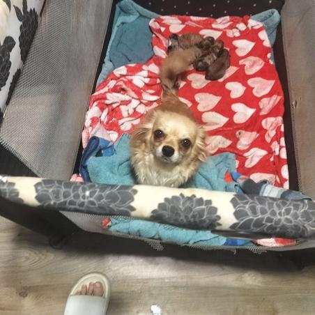 Henry is a male Chihuahua. Carefully selected as a great representative of his breed, Mechelle decided to make him part of their program. Mechelle has passed Good Dog’s screening process, which involved a review of their breeding practices, environment, and the mental and physical health of their dogs.
