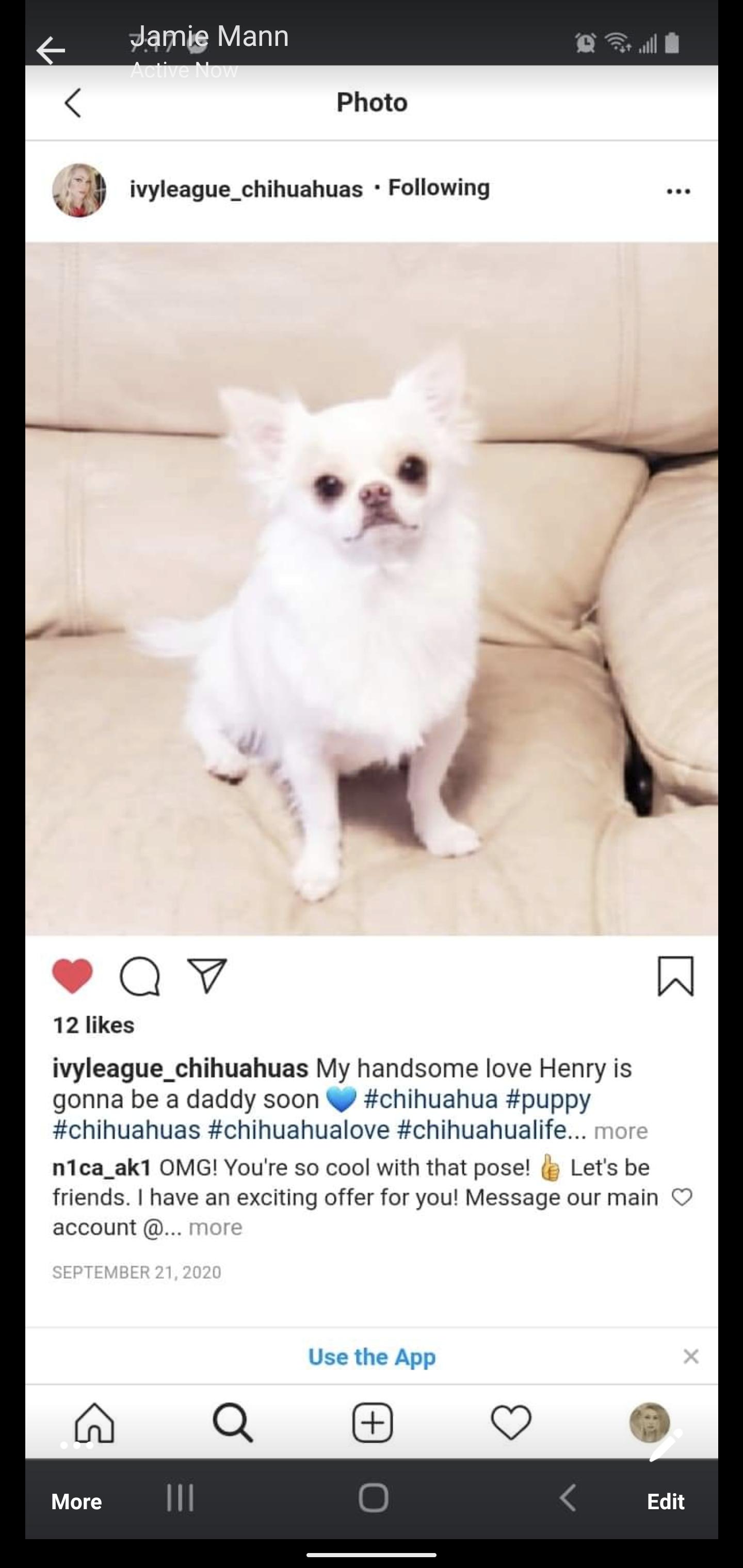 I highly recommend A1 ivy league chihuahuas. Mechelle was easy to communicate with and she blessed me and my family with a little angel named Milo (AKA) Mateo . I thought I could never find another dog after my little Diego had passed away. I did a lot of searching and when I accidentally came across A1 ivy league website and saw her chihuahuas I instantly fell in love with Milo. I'm so happy to have him in my family. Everyone just absolutely loves him and he brings so much joy into our lives. You can tell Mechelle loves what she does and is an exceptional breeder. He is healthy and was already going on the potty pads when I brought him home. THANK YOU MECHELLE!!