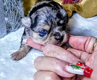 Blue is my tiny blue Merle and he is very friendly and sweet..