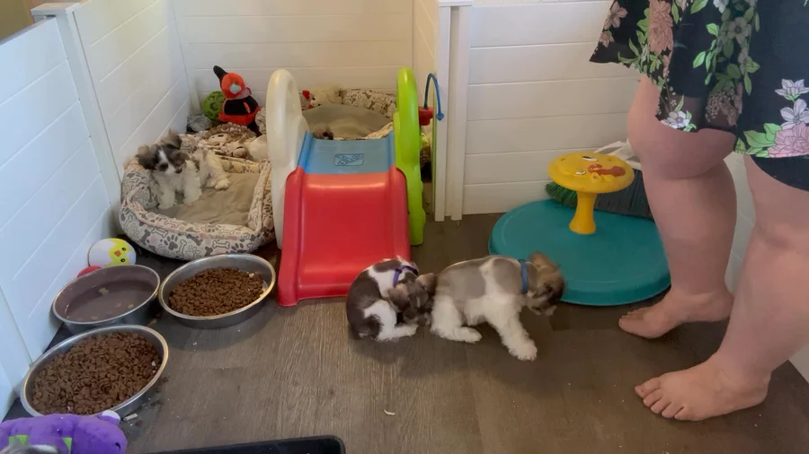 After bringing home a pup anxious about baths, grooming, and nail trims, I became passionate about raising confident puppies. I emphasize early exposure to sights, sounds, people, children, crate training, potty training, and basic manners. I monitor each puppy’s progress and tailor care to their needs, nurturing well‑adjusted pups eager to thrive in loving homes.